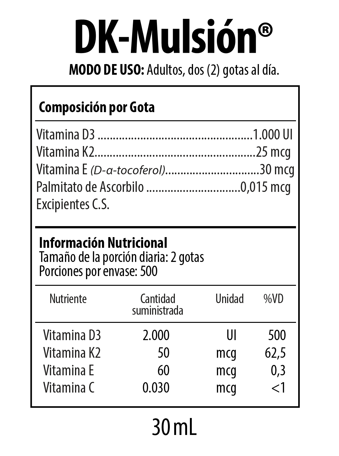 Fórmula con vitamina D3 y vitamina K2. Es un producto de soporte nutricional cuyo propósito es agregar a la dieta normal, siendo fuente concentrada de nutrientes y otras sustancias con efecto fisiológico o nutricional.